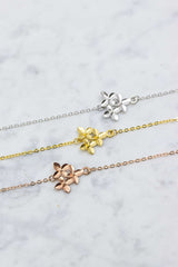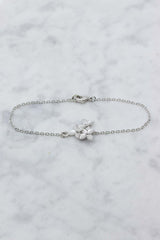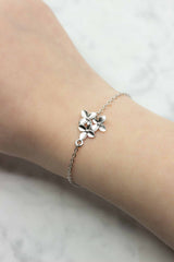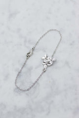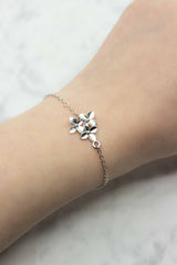 Dieses silberne Armband, mit drei zarten Blüten, ist der perfekte Begleiter für einen unvergesslichen Tag. Das Armband wird mit einem Karabinerverschluss geschlossen.