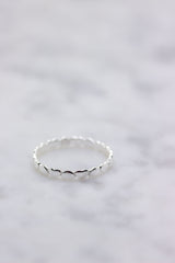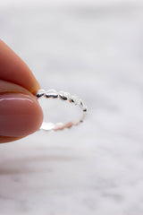 Dieser wunderschöne silberne Ring besteht aus zierlich aneinandergereihten Herzen. Sein schlichtes Design macht ihn zu einem besonderen Accessoire für jeden Tag.