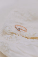 Dieser zarte rosegoldene Ring, besetzt mit einem Zirkoniastein, bringt jeden zum Strahlen. Seine schlichte Eleganz lässt Herzen höher schlagen und ist damit ein ganz besonderer Begleiter.