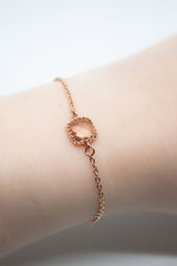 Dieses rosegoldene Armband mit einem pfirsichfarbenen Stein, eignet sich perfekt für jeden Tag.