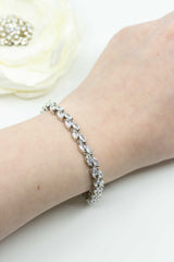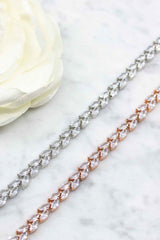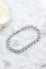 Dieses wunderschöne versilberte Armband im floralen Design ist aus funkelnden, ovalen Zirkoniakristallen gefertigt.