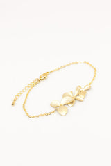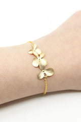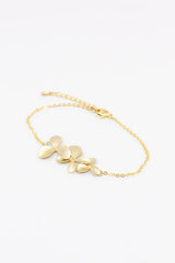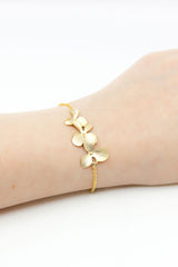 Wunderschönes vergoldetes Armband mit zarten Blüten. Das Armband wird mit einem Karabinerverschluss, an einem 3 cm langen Kettchen geschlossen.