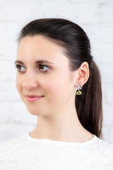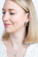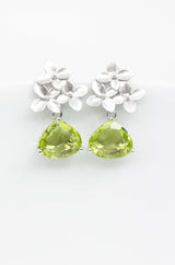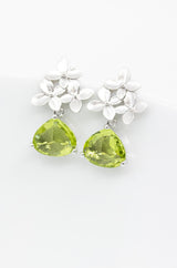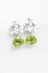 An den silbernen Ohrsteckern sind drei zarte kleine Blüten befestigt. Die apfelgrünen Schmucksteine geben den Ohrringen das ganz besondere Etwas.