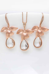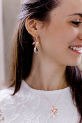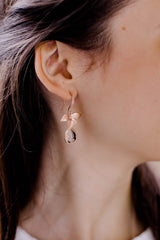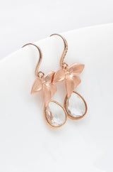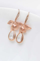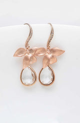 Wunderschöne rosegoldene Ohrhänger, mit zarten Blüten und tropfenförmigen Kristallen. Diese Ohrringe sind ein absoluter Blickfang!