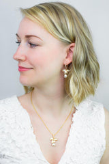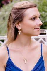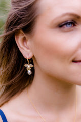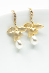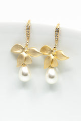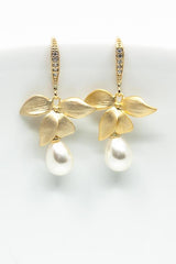 Wunderschöne vergoldete Ohrhänger, mit zarten Blüten und kleinen ovalen Perlen. Diese Ohrringe sind ein absoluter Blickfang!