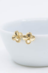 Florale Ohrstecker mit matt vergoldeten Blüten.