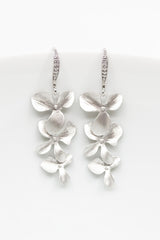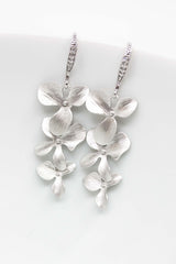 Lange versilberte Ohrhänger, mit drei wunderschönen Orchideenblüten. Ein absoluter Blickfang!