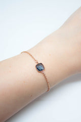 Dieses rosegoldene Armband mit einem blauen Stein, eignet sich perfekt für jeden Tag.
