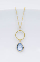 Zarte vergoldete Kette mit einem wunderschönen hellblauen Stein, der an einem matten Ring befestigt ist.