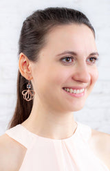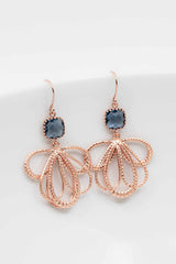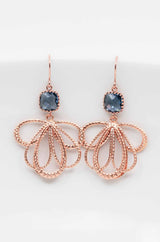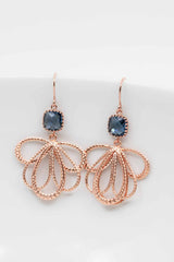 Diese rosevergoldeten Ohrringe, mit kleinen Steinen in dunklem Blau, machen Dein Outfit zu einem echten Highlight.