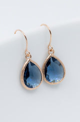Die bezaubernden rosevergoldeten Ohrringe, mit blauen Steinen, sind perfekt für viele Gelegenheiten. Ihre Tropfenform lässt sie schlicht aber dennoch elegant wirken. Die passende Kette zu den Ohrhängern rundet das Outfit ab.