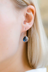 Rosevergoldete Ohrringe, mit wunderschönen Steinen in Blau.