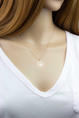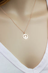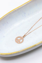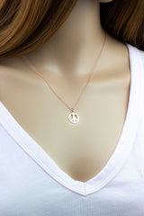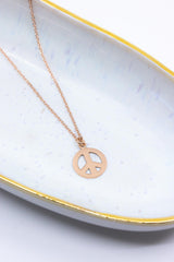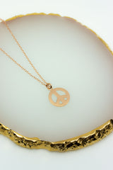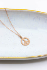 Zarte rosegoldene Kette mit einem kleinen Peace Zeichen als Anhänger.