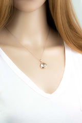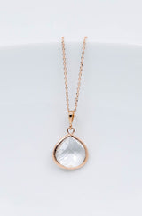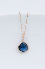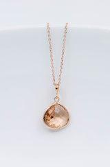 Die zarte rosegoldene Kette hat mit feinen Anhänger in Tropfenform.
