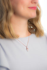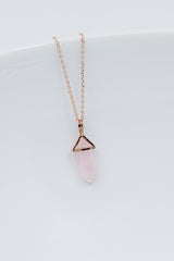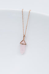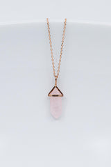 Diese rosegoldene Halskette ist ein echtes Highlight! Der wunderschöne kleine Rosenquarz-Anhänger, in Form einer Spitze, passt perfekt zu vielen Anlässen.