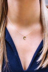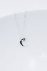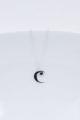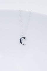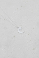 Silberne Kette mit einem kleinen Mond und Stern Anhänger.