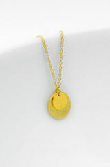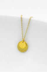 Vergoldete Kette mit zwei gebürsteten Plättchenanhängern.