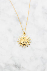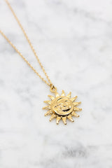 Zarte vergoldete Kette, mit einem kombinierten Anhänger aus Sonne und Mond.