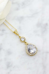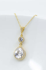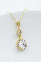 Der lange funkelnde Kristallanhänger ist an einer feinen vergoldeten Kette befestigt und bezaubert durch sein elegantes Design.