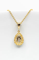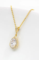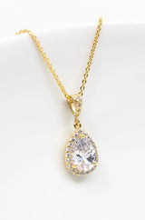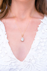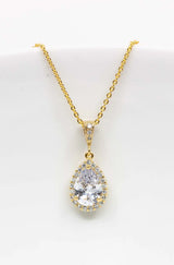 Der tropfenförmige Kristallanhänger ist an einer feinen goldenen Kette befestigt und bezaubert durch sein elegantes Design.