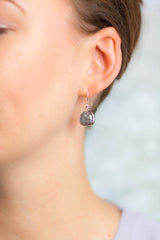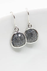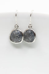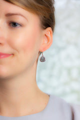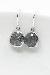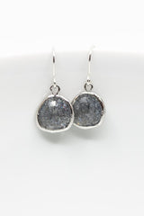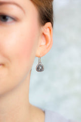 Edle silberne Ohrringe, mit gebrochenen Schmucksteinen in Grau.