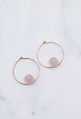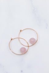 Diese eleganten, rosegoldenen Creolen bezaubern durch ihre schlichte Form. Sie sind Perlen aus echtem Rosenquarz besetzt und passen zu vielen Gelegenheiten!