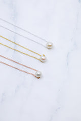 Der schlichte runde Perlenanhänger ist an einer feinen Kette befestigt und bezaubert durch sein elegantes Aussehen.