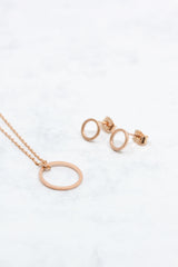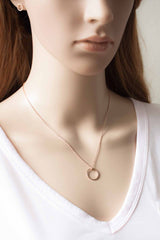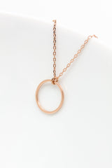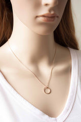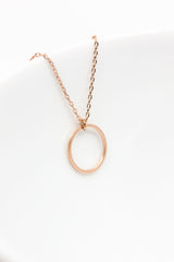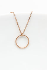 Der matt rosegoldene Kreisanhänger ist an einer feinen rosegoldenen Kette befestigt und bezaubert durch sein schlichtes Aussehen.