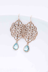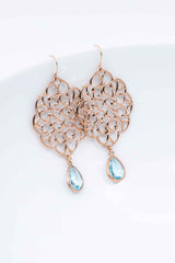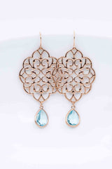 Diese rosegoldenen Ohrringe, mit Steinen in Aquamarin, machen Dein Outfit zu einem echten Highlight.