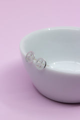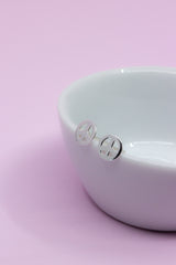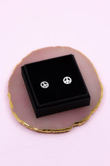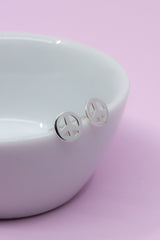 Kleine Ohrringe aus Silber in Form eines Peace-Zeichens.