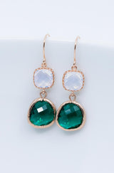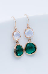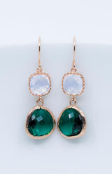 Lange rosevergoldete Ohrringe mit wunderschön funkelnden grünen und opalfarbenen Kristallen.