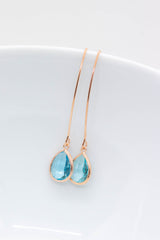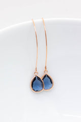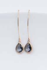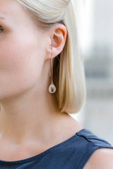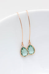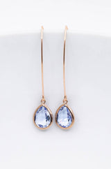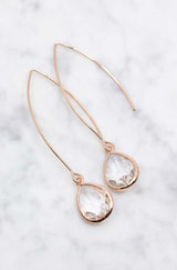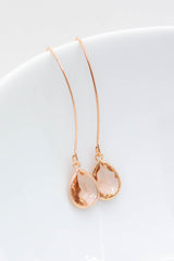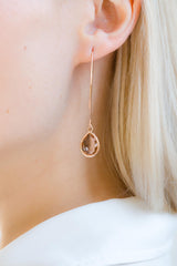 Lange rosegoldene Ohrringe mit Kristallen.
