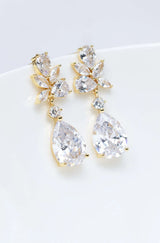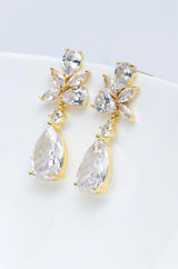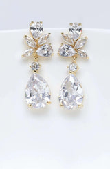 Die vergoldeten Ohrringe, mit funkelnden Kristallen und Zirkoniasteinen, bezaubern durch ihre pure Eleganz. Ihre ganz besondere Form verleiht ihnen ein einzigartiges Aussehen.
