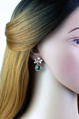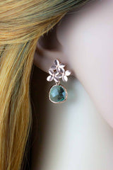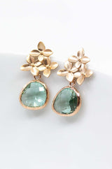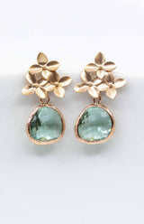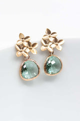 An den rosegoldenen Ohrsteckern sind drei zarte kleine Blüten befestigt. Die erinitgrünen Schmucksteine geben den Ohrringen ein sehr elegantes Aussehen.