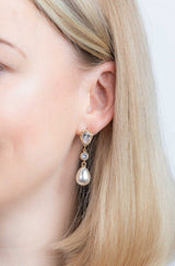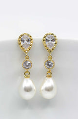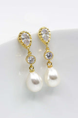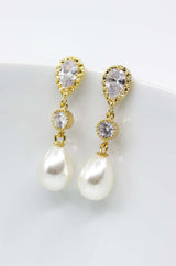 Diese zeitlosen langen Perlenohrringe kannst Du perfekt zu vielen Brautoutfits tragen. Die vergoldeten Ohrstecker bezaubern mit ihren tropfenförmigen Perlen durch pure Eleganz.