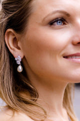 Die versilberten Ohrstecker mit funkelnden Zirkoniasteinen und ovalen Perlen, bezaubern durch ihre pure Eleganz. Ihre ganz besondere Form verleiht ihnen ein einzigartiges Aussehen.