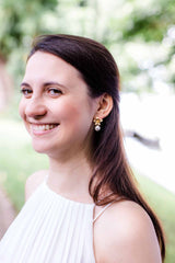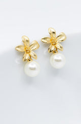An den zarten vergoldeten Blüten der Ohrstecker, sind kleine, runde Perlen befestigt. Diese geben den Ohrringen ein sehr elegantes Aussehen. Sie sind ein absoluter Blickfang!
