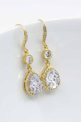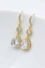 Die langen, goldenen Ohrhänger mit ihren funkelnden Zirkoniasteinen bezaubern durch pure Eleganz. Sie sind ein absoluter Blickfang!