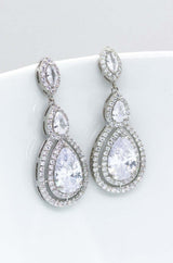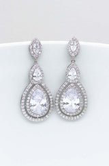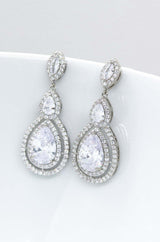 Die versilberten Ohrringe bezaubern, mit ihren vielen großen und kleinen funkelnden Zirkoniasteinen, durch pure Eleganz. Ihre Tropfenform verleiht ihnen ein zeitloses Aussehen.