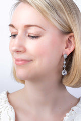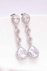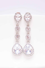 Die langen, silbernen Ohrhänger, mit ihren funkelnden Zirkoniasteinen, bezaubern durch pure Eleganz. Sie sind ein absoluter Blickfang!