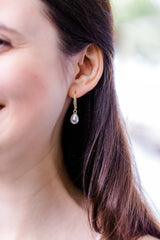 Diese zeitlosen kleinen Perlenohrringe kannst Du perfekt zu vielen Brautoutfits tragen. Die Ohrhänger bezaubern mit ihren tropfenförmigen Perlen durch pure Eleganz. Die zarten Ohrhaken, mit funkelnden kleinen Zirkoniasteinen, machen die Ohrringe zu einem absoluten Blickfang!