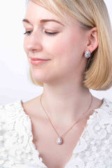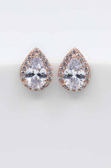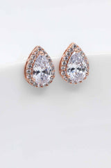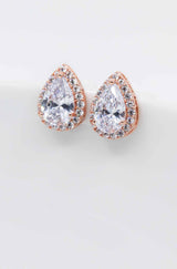 Bezaubernde rosevergoldete Ohrstecker in Tropfenform, umrandet von funkelnden Zirkoniasteinen. Ihr zeitloses Design bringt jede Braut zum Strahlen.