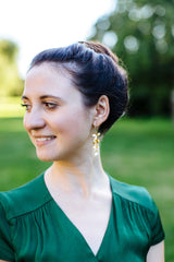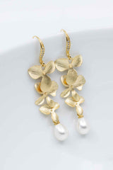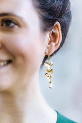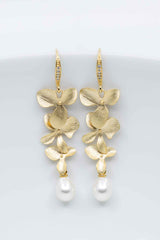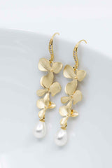 Lange vergoldete Ohrhänger, mit wunderschönen Orchideen, bezaubern durch pure Eleganz. Die kleinen Perlen machen sie zum absoluten Blickfang!