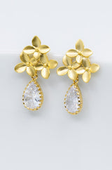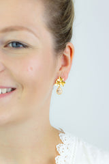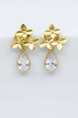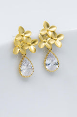An den vergoldeten Ohrsteckern sind drei zarte kleine Blüten befestigt. Die zarten Schmucksteine geben den Ohrringen ein sehr elegantes Aussehen.
