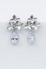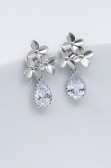 An den versilberten Ohrsteckern sind drei zarte kleine Blüten befestigt. Die zarten Schmucksteine geben den Ohrringen ein sehr elegantes Aussehen.