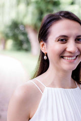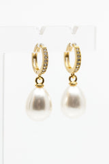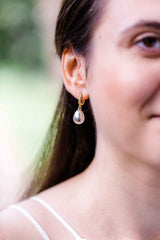 Diese vergoldeten Perlenohrringe kannst Du perfekt zu vielen Brautoutfits tragen. Die zeitlosen Ohrringe bezaubern mit ihren tropfenförmigen Perlen durch pure Eleganz. Die zarten Brisurenverschlüsse, mit funkelnden kleinen Zirkoniasteinen, machen die Ohrringe zu einem absoluten Blickfang!