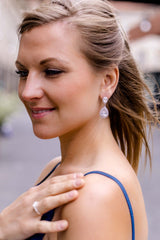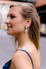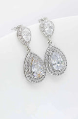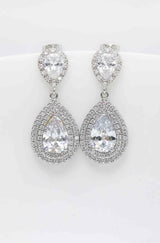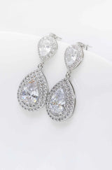Die versilberten Ohrringe bezaubern, mit ihren großen und vielen kleinen funkelnden Zirkoniasteinen, durch pure Eleganz. Ihre Tropfenform verleiht ihnen ein zeitloses Aussehen.