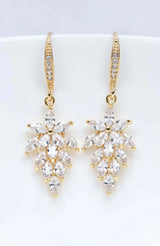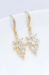 Die vergoldeten Ohrringe, mit funkelnden Kristallen und Zirkoniasteinen, bezaubern durch ihre pure Eleganz. Ihre ganz besondere Form verleiht ihnen ein einzigartiges Aussehen.