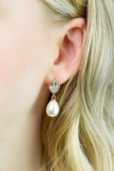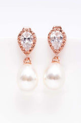 Diese zeitlosen Perlenohrringe kannst Du perfekt zu vielen Brautoutfits tragen. Die rosegoldenen Ohrringe bezaubern mit ihren tropfenförmigen Perlen durch pure Eleganz. Die zarten Ohrstecker, mit funkelnden kleinen Zirkoniasteinen, machen die Ohrringe zu einem absoluten Blickfang!