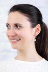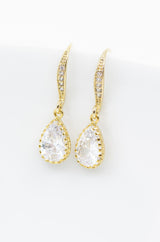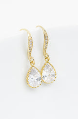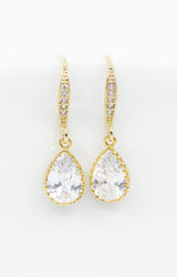 Die vergoldeten Ohrhänger bezaubern durch pure Eleganz. Ihre Tropfenform verleiht ihnen ein zeitloses Aussehen, womit sie wunderbar zu deinem Brautkleid passen. Die zarten Ohrhaken mit funkelnden kleinen Zirkoniasteinen machen die Ohrringe zu einem absoluten Blickfang!